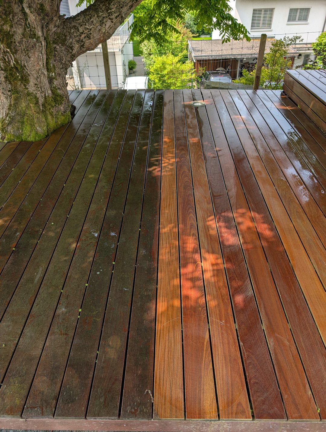 Nach einem langen Winter zeigen viele Holzterrassen Spuren: Grau verfärbtes Holz, Alg…